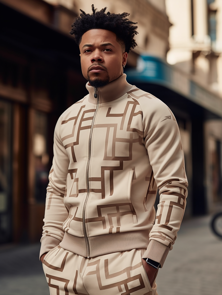 The geometric color combo lends a contemporary and dynamic look to the tracksuit, making it a standout piece in any wardrobe. Its vibrant patterns celebrate individuality and add an element of fun to your everyday attire.