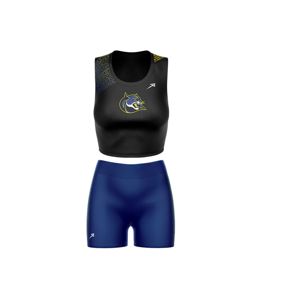Our premiere competition set comes with a 1 black compression top branded. 1 girls poly/spandex shorts in black. All encrypted with imigongo print design.